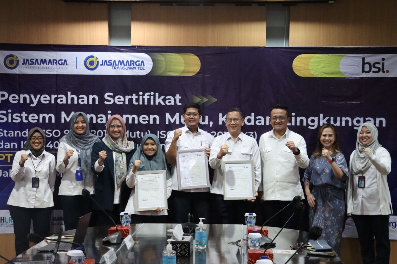 Berkat menerapkan stadard K3, Jasa Marga Transjawa Tol menerima yiga sertifikasi ISO 2022.